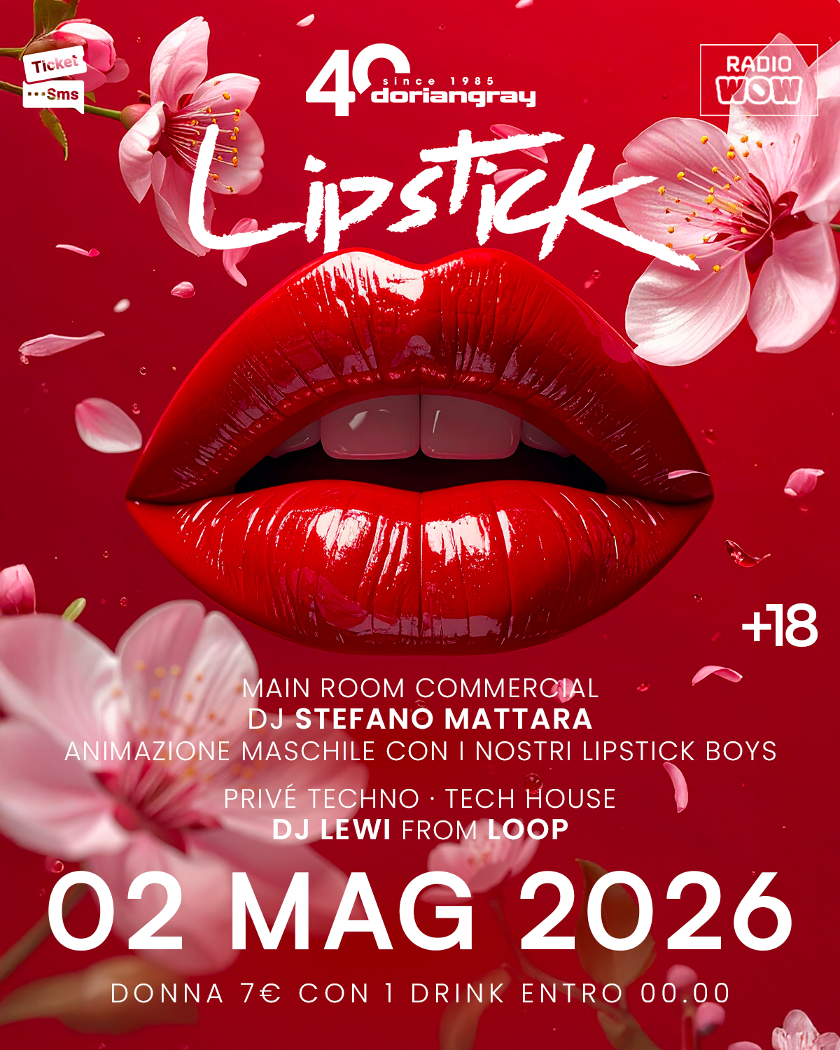💋 LIPSTICK – SPRING EDITION 💋 📅 Sabato 2 Maggio 2026 📅 Atmosfere più leggere, ma energia sempre al massimo. Lipstick torna con una notte che profuma di primavera, tra VEDI