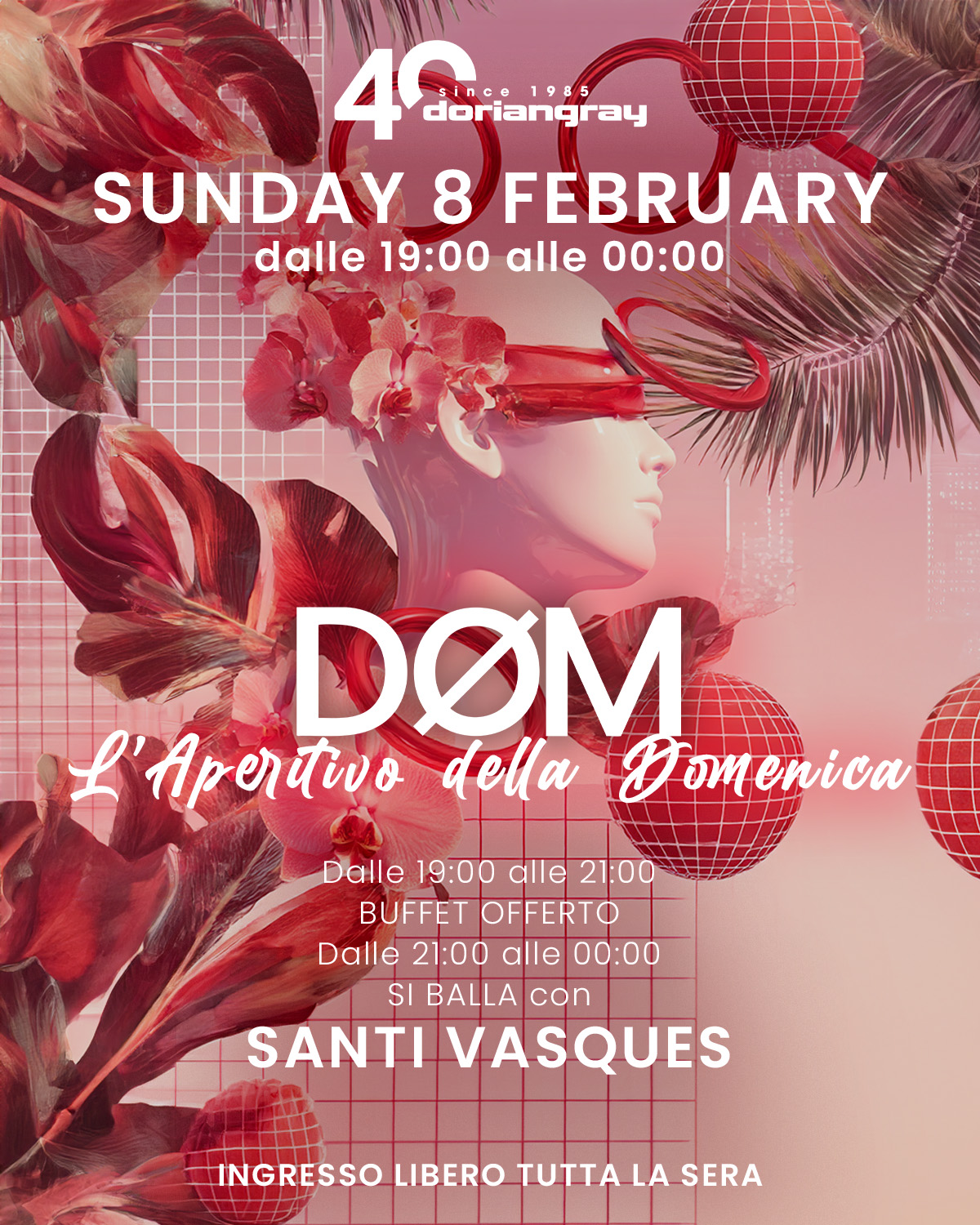 🔥 La domenica continua a spingere. DØM torna al Dorian Gray con una serata che non lascia spazio alle pause. Dalle 19:00 aperitivo e buffet per entrare subito nel ritmo, VEDI