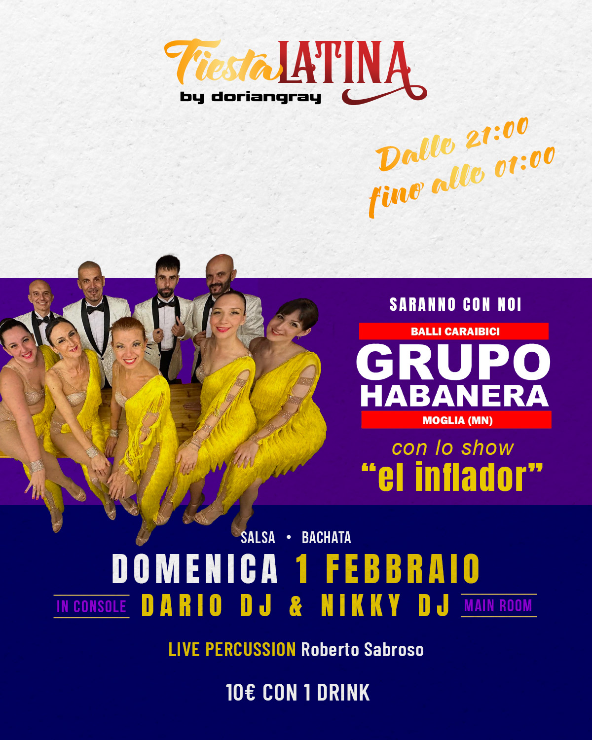 Marzo si apre con il ritmo giusto. 💃🔥 Domenica 1 marzo la Fiesta Latina torna al Dorian Gray con una serata tutta da vivere, tra salsa, bachata e quell’energia che VEDI |