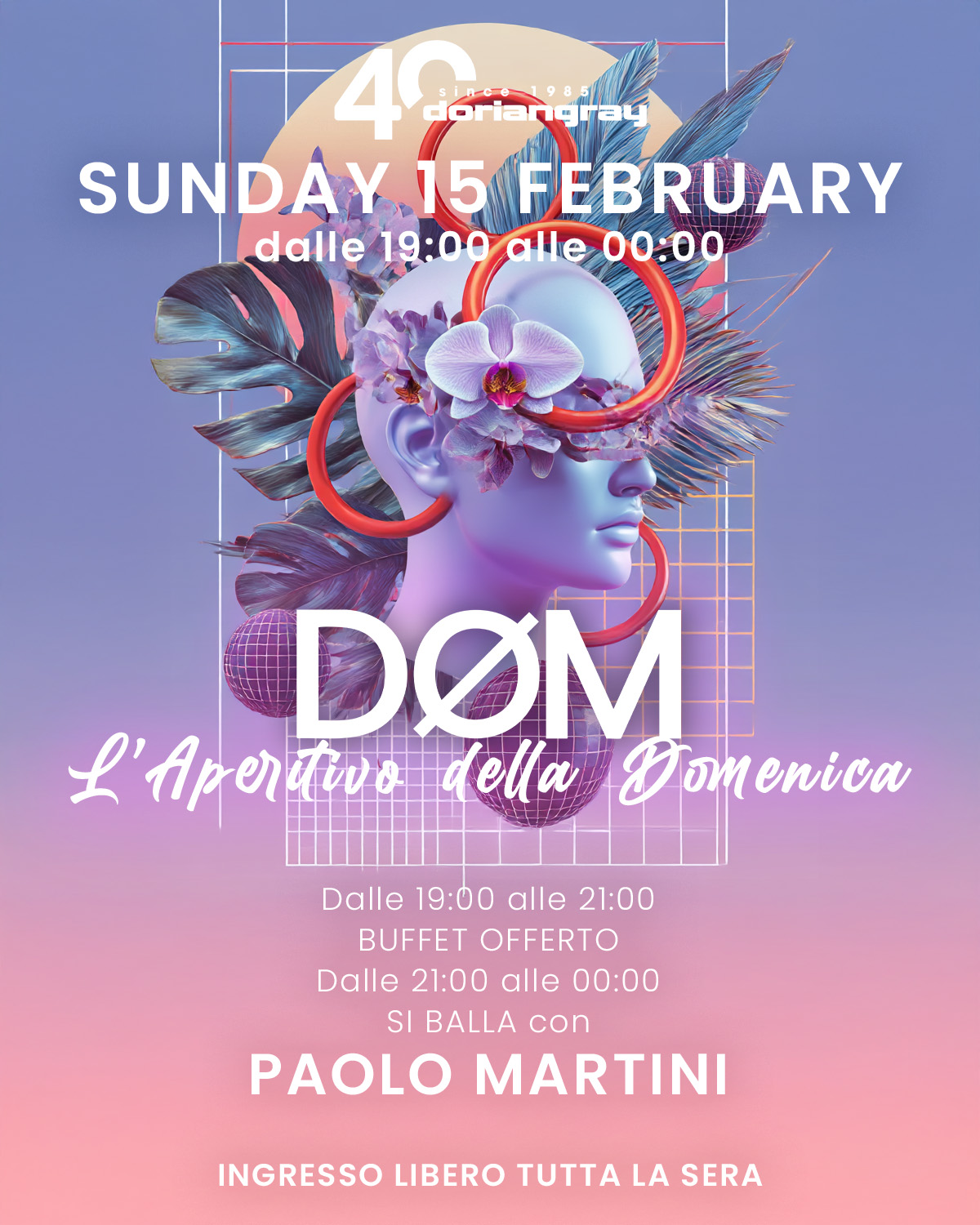 🔥 La domenica prende ritmo quando il suono sale. DØM riporta movimento al Dorian Gray con una serata che cresce senza pause. Dalle 19:00 si entra nel giro con aperitivo VEDI |