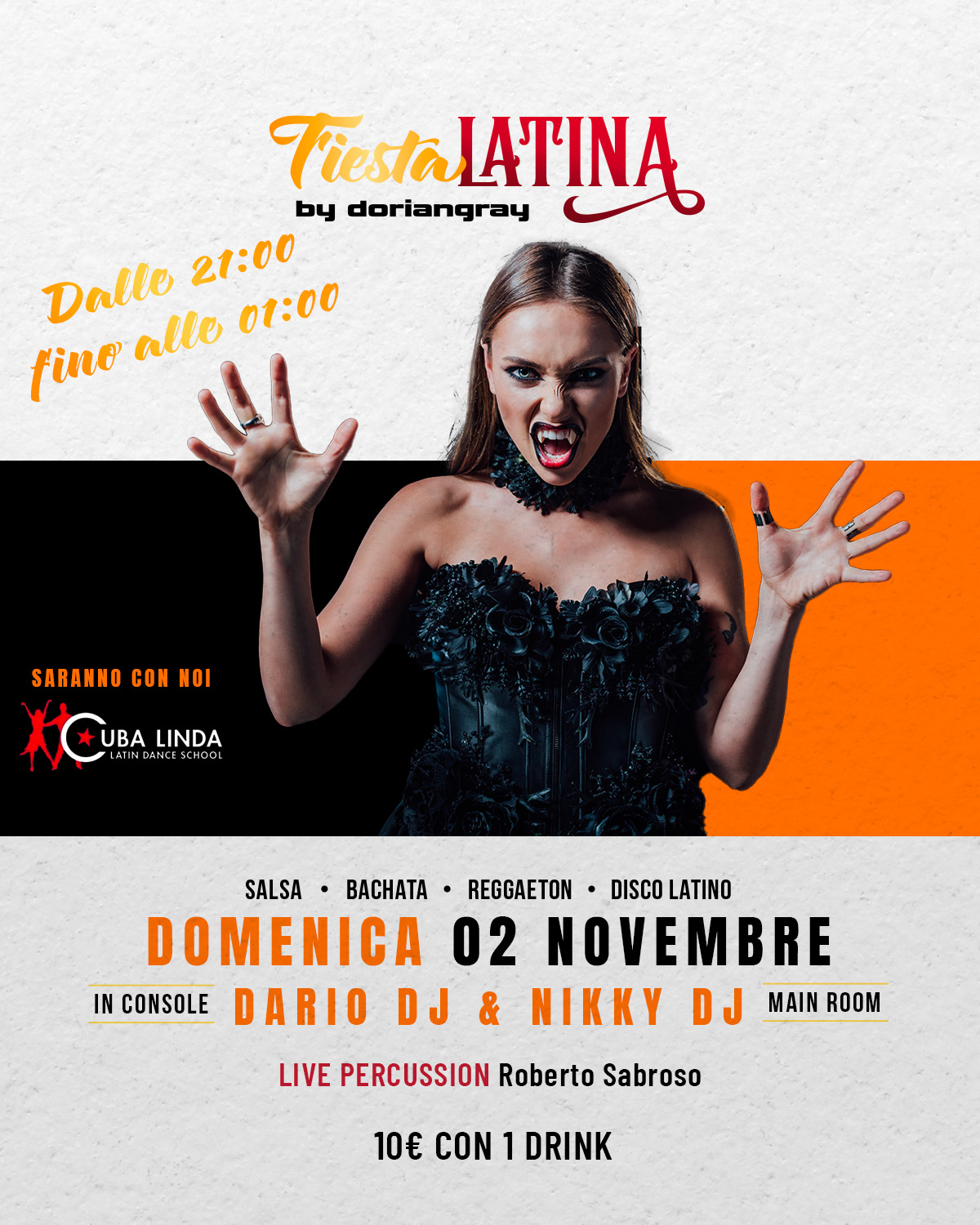 Quando il ritmo incontra la notte più misteriosa dell’anno… nasce una Fiesta da paura! 💃🕷️🔥 Domenica 2 novembre, la Main Room del Dorian Gray si tinge di atmosfera Halloween latina VEDI |