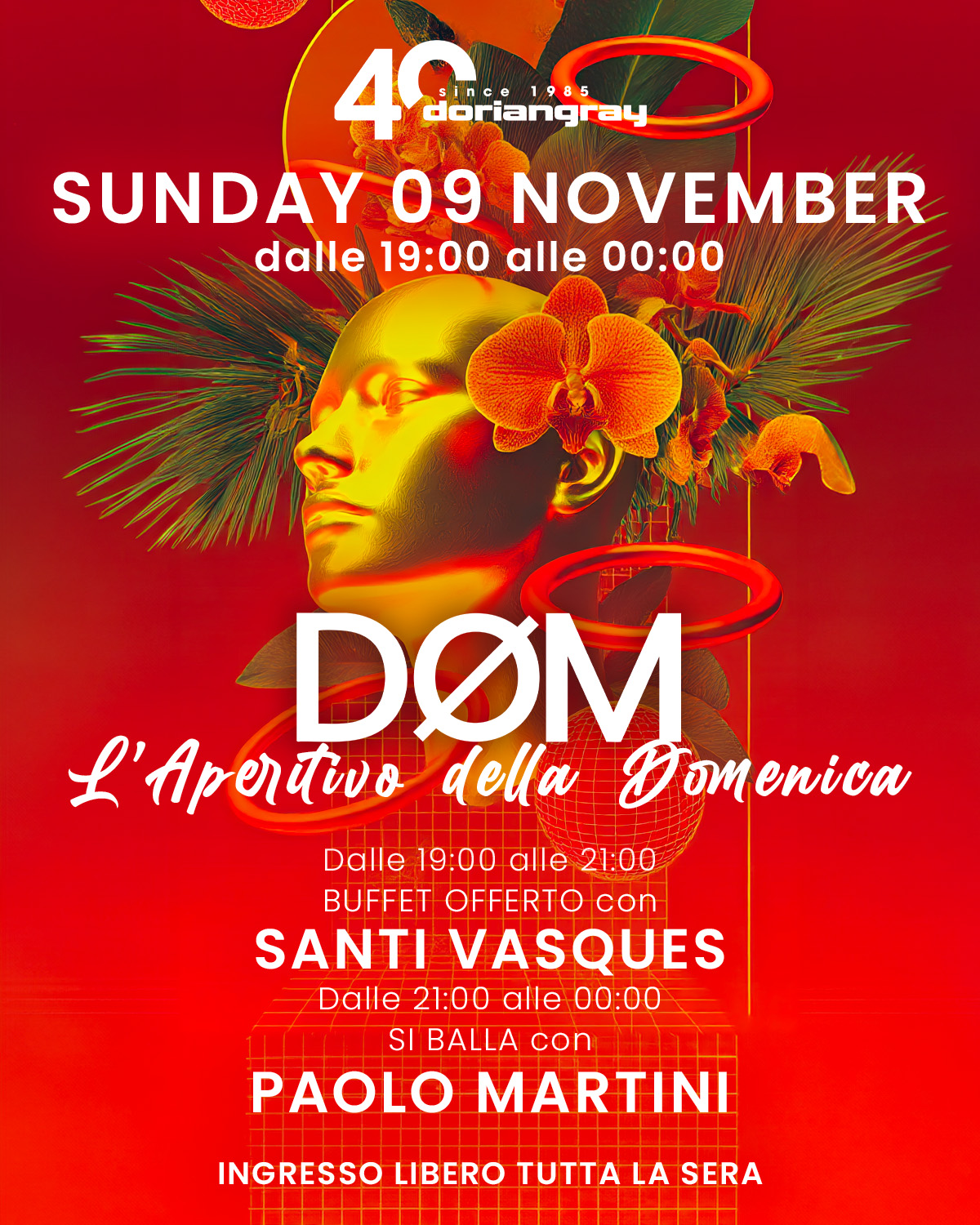 🔥 DØM – L’Aperitivo della Domenica 🔥 La domenica si accende ancora. Dalle 19:00 il ritmo parte con Santi Vasques e il suo sound perfetto per l’aperitivo, accompagnato dal buffet VEDI |
