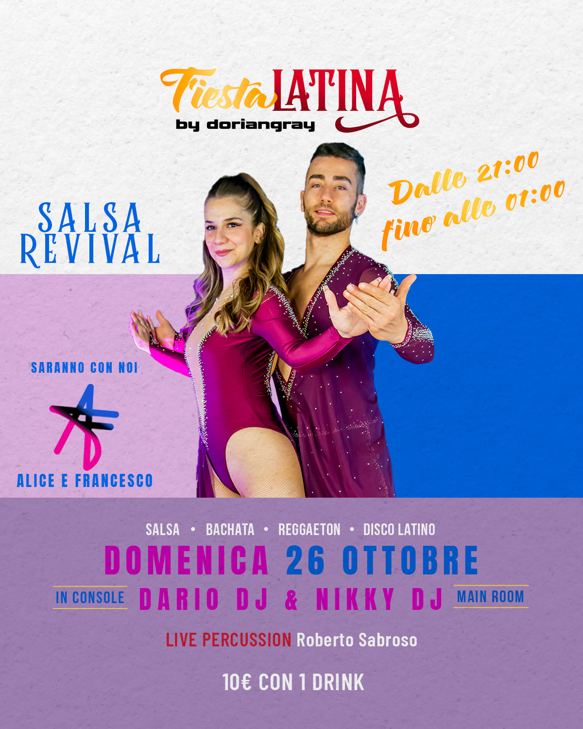 La salsa torna protagonista delle notti veronesi! 💃🔥 Domenica 26 ottobre, la Main Room del Dorian Gray si accende per la prima serata Salsa Revival, un nuovo appuntamento dedicato a VEDI |