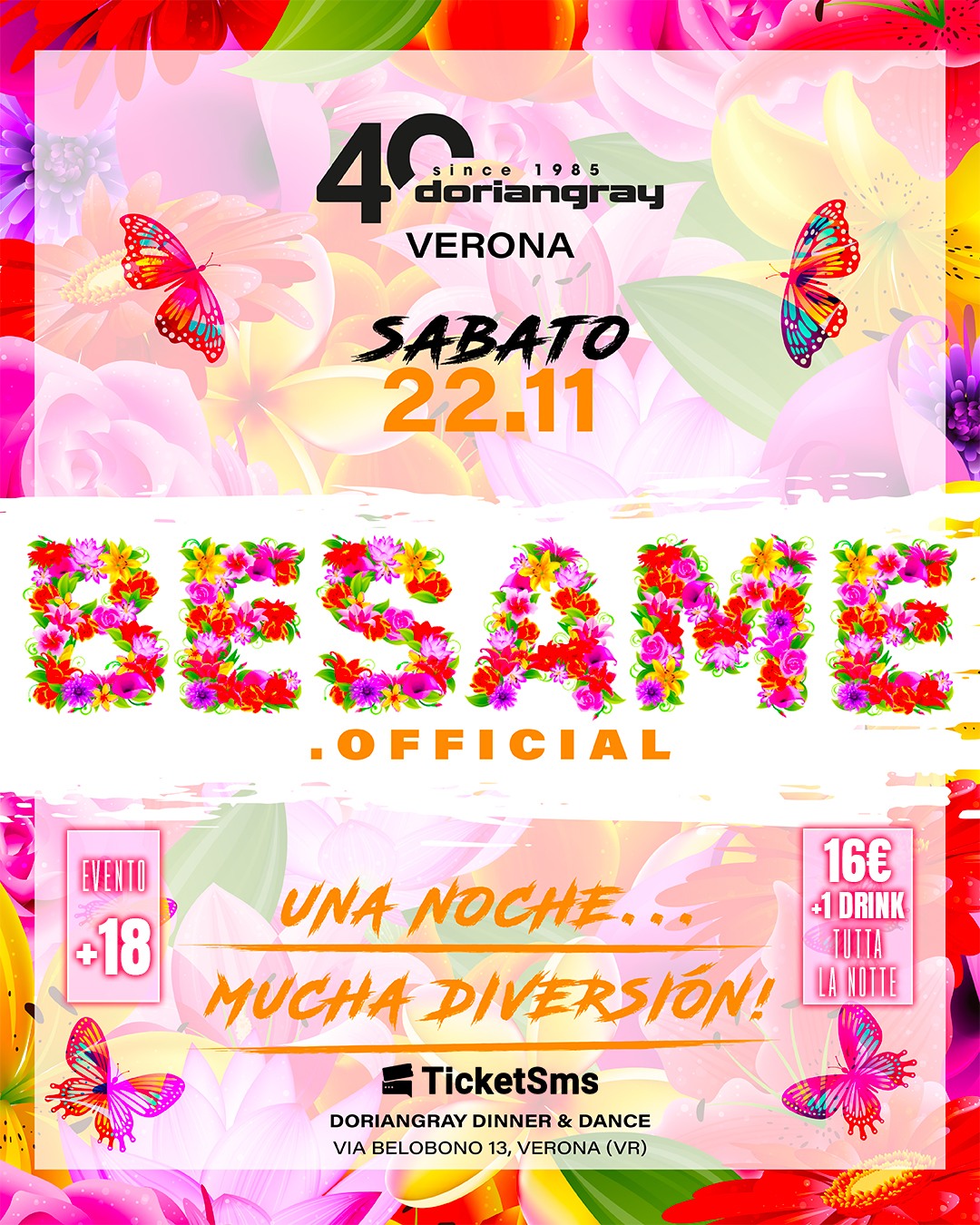 🌸 BESAME - UNA NOCHE... MUCHA DIVERSIÓN 🌸 📅 Sabato 22 Novembre 2025 📅 Il sabato del Dorian si riempie ancora una volta di colore, ritmo e libertà. Besame torna VEDI |