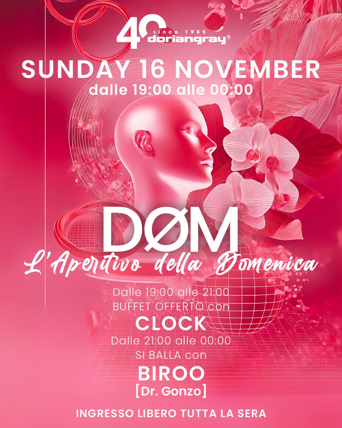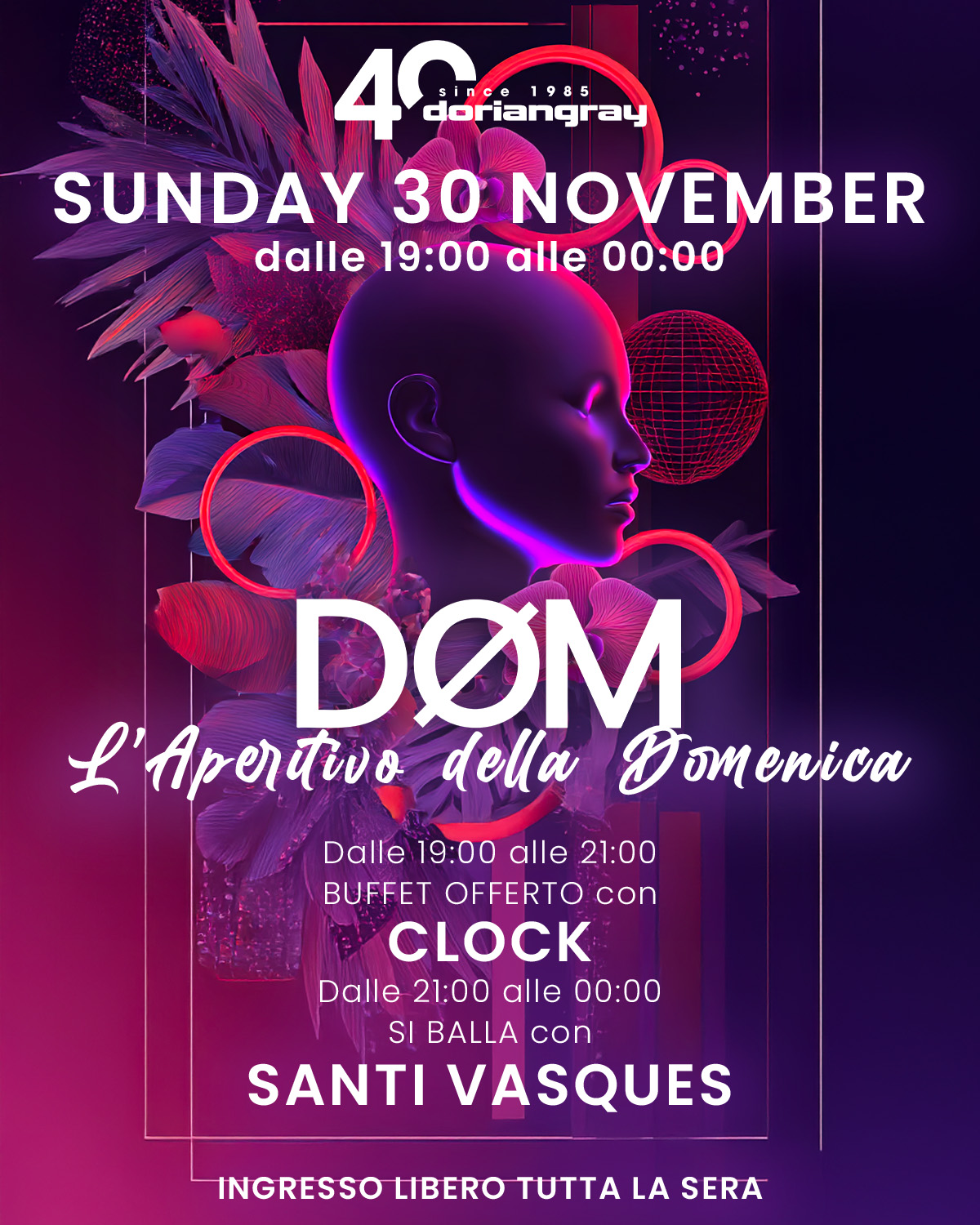 💜 DØM – L’Aperitivo della Domenica 💜 L’ultima domenica di novembre arriva con una serata tutta da vivere. Si parte con Clock durante l’aperitivo e il buffet offerto, poi dalle VEDI